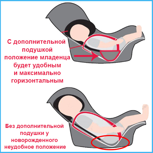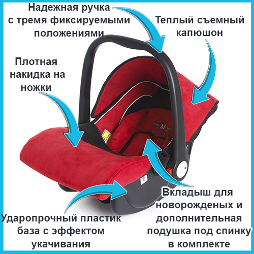 - Специальная форма автокресла позволяет возить в нем новорожденных малышей.