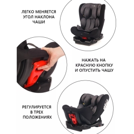 - Способ фиксации ребенка в автокресле: с рождения до 104 см роста внутренние 5-титочечные ремни безопасности; с 3,5-4 лет штатный ремень автомобиля
