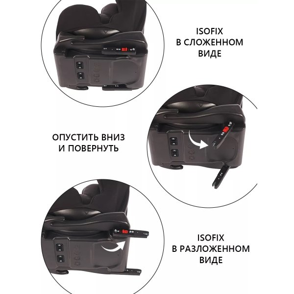 - Способ крепления в автомобиле: против хода движения - 3-х точечный автомобильный ремень безопасности ; по ходу движения – IsoFix + якорное крепление Top Tether или 3-х точечный автомобильный ремень безопасности