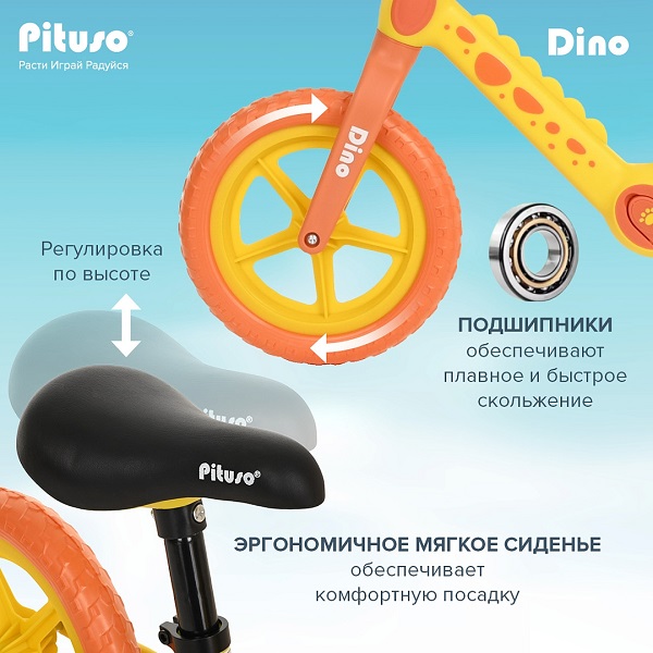 Pituso беговел Dino. Новинка сезона 2024. Уникальный динамичный дизайн. Облегченная модель.
