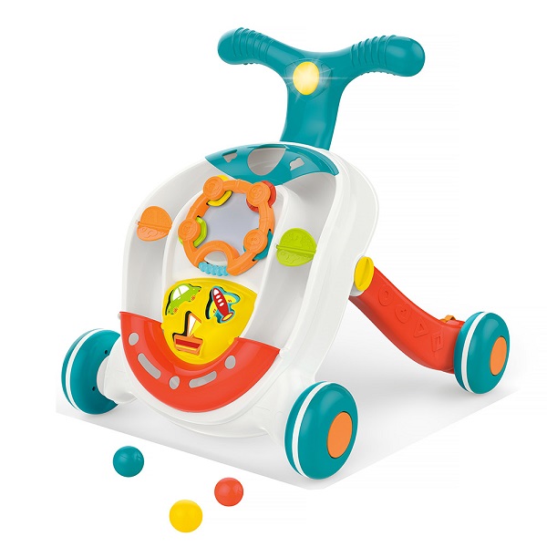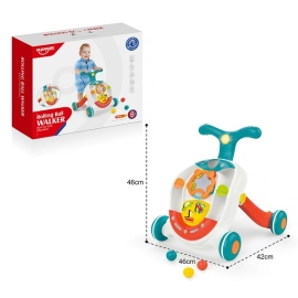 - Игрушка отлично развивает зрительное и слуховое восприятие, мелкую и крупную моторику, ловкость, координацию движений (малыш учится вставать и ходить, держась за ручку), учит распознавать различные цвета и формы.
