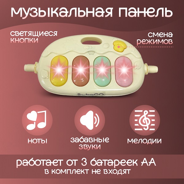 Панель легко снимается и может использоваться отдельно: в кроватке, коляске, на полу или даже в дороге.