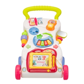 Каталка-ходунки c развивающим центром JUNIOR – многофункциональная развивающая игрушка, представляющая собой одновременно ходунки и интеллектуальную систему обучения и развития малыша. Удобная ручка и надежная конструкция помогут ребенку сделать свои первые шаги, а многофункциональный развивающий центр на передней панели надолго увлекут ребенка. Отсутствие острых углов сведет к минимуму риск ушибов при падении.