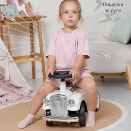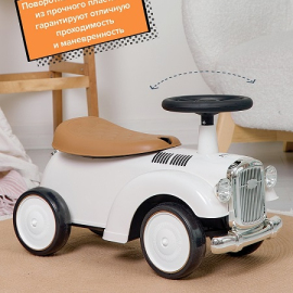 Пищалка на руле добавляет играм веселья, а стильный внешний вид в духе ретро-автомобилей понравится, как мальчикам ,так и девочкам.
