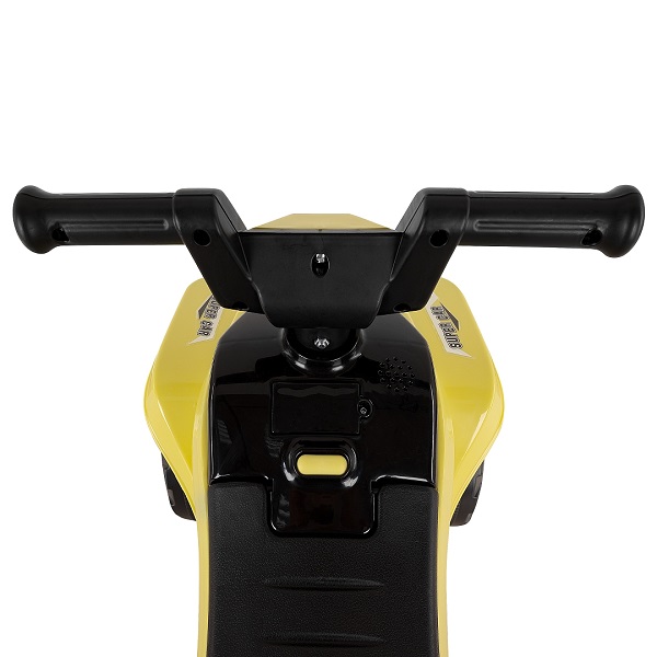 Под рулем расположена кнопка, которая воспроизводят звук старта и веселые песенки на русском языке - 6 мелодий. (батарейки в комплект не входят).