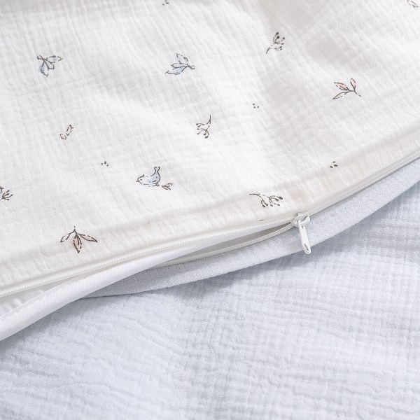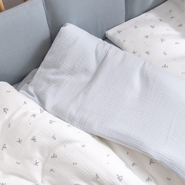 Невероятно нежные комплекты Perina Muslin из мягкого жатого муслина в пастельных тонах успокоят и подчеркивает уютную домашнюю атмосферу. Жатый двухслойный муслин — это натуральная 100% хлопковая ткань, которая деликатно касается кожи малыша, делая сон особенно приятным. Сохраняя яркость цвета, муслин остается как новый даже после многократных стирок. Говоря о практичности, можно вспомнить о пододеяльнике на молнии и простыне на резинке. Благодаря этим деталям белье легко заправлять. При этом застежка сделана таким образом, чтобы ребенок не смог случайно ее задеть.