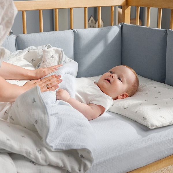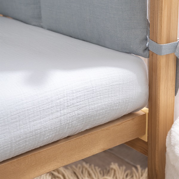 С комплектами Muslin идеально сочетаются бортики в кроватку Soft Cotton в цветах: мокко, голубой и серо-оливковый.