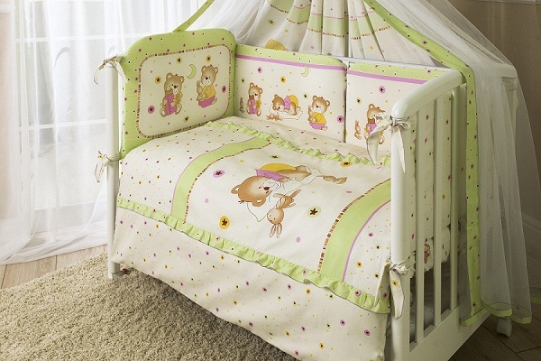 Ника невероятно красивый комплект для ваших детишек! Для дополнительного удобства бампер сделан из 2 частей со съемным чехлом. В дизайне комплектов используются ткани-компаньоны – комплект состоит из комбинации двух видов ткани.