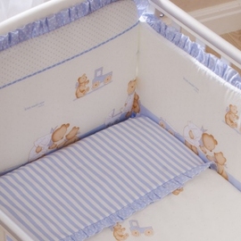 Для окраски тканей используется технология реактивной печати, которая обеспечивает высокую четкость рисунка и длительную стойкость цветов. Обладает антиаллергенными свойствами. Бампер сделан из 4-х частей со съемным чехлом, простынь на резинке идеально облегает матрас, балдахин шириной 4,5 метра полностью укрывает кроватку.