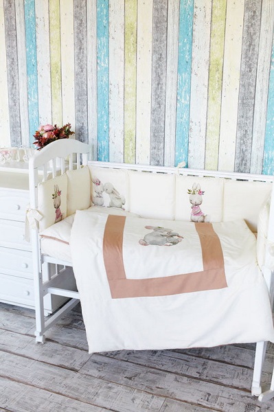 Уникальный дизайн и сочетание светлых тонов делают этот комплект совершенно изящным, нежным и уютным. Бортики, которые надежно крепятся к кроватке не сползают, не сминаются и защищают вашего малыша. Хорошее качество материалов позволяет использовать его длительный срок , оно не меняет форму, цвет и вид. Этот комплект несомненно украсит ваш интерьер и порадует маленькую кроху.
