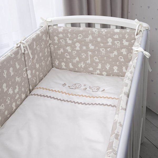 Качество ткани и пошива гарантирует долгий срок службы комплекта. В основе набора премиальный сатин ТС300 - это натуральный хлопок, который за счет особого плетения нитей блестит, как шелк, отличается нежностью и гладкостью. Чехлы бортиков из натурального хлопка Eco Soft Cotton, который отлично пропускает воздух и долго остается как новый даже после многократных стирок. Бортики составные, это дает разные варианты использования.