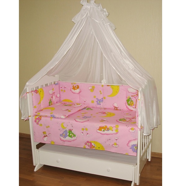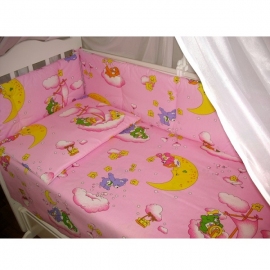 Детское постельное белье Сплюшка Мишка на облаках розовый 7 предметов