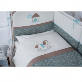 очередная безупречная коллекция от любимого производителя Перина. Великолепно подобранное сочетание цветов и рисунок милой лошадки в сочетании с отличным качеством материала сатина класса люкс доставят и родителям и малышам массу удовольствия. Комплект подходит в кроватку со стандартными размерами 120х60. Производитель использует только самые качественные и безопасные материалы в своих комплектах. Поэтому одеяло и подушка изготовливаются с использованием гипоаллергенного воздушного эвкалиптового волокна, благодаря чему объем и форма сохраняются даже после многочисленных стирок. Перина заботится не только о ребенке, но и о маме. Поэтому бампер разделен на 6 частей и со съемным чехлом. Что существенно облегчает уход за постельным бельем.
