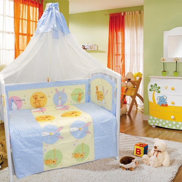 Комплекты в кроватку выполнены их натурального 100% хлопка - плотная качественная бязь. После стирок детское постельное белье Евротек не линияет и не садится, сохраняеет свои высокие потребительские свойства.