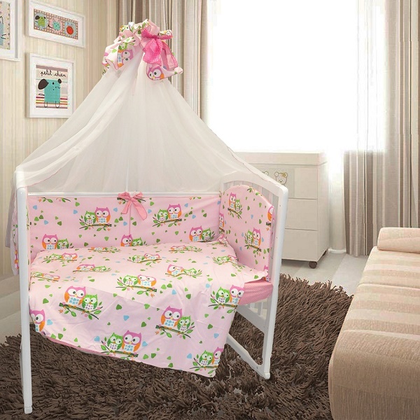 Детское постельное белье Евротек Совушки-подружки розовый 7 пр.