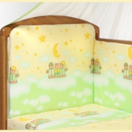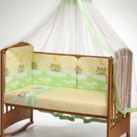 Детские постельные комплекты "Аманда" имеют свой оригинальный дизайн и неповторимый стиль. Для дополнительного удобства бампер сделан из 2 частей. Чехол съемный. Теперь вы легко можете стирать только внешнюю ткань бампера, не затрагивая внутреннее наполнение. Балдахин шириной 5 метров полностью укрывает кроватку, а простынь на резинке идеально облегает матрас.
