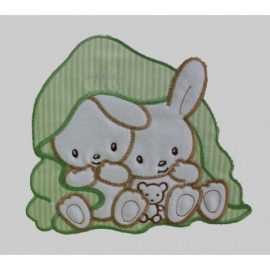 Хорошое и доброе утро начинается после приятной ночи, а так будет обязательно, если Ваш малыш будет спать на комплекте Bombus. Вселый зайка, выполненный в виде аппикации развеселит и порадует малыша.
