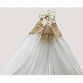 Воздушный балдахин, изготовленный из мягкой вуалевой ткани с бантов в том всему комплекту.