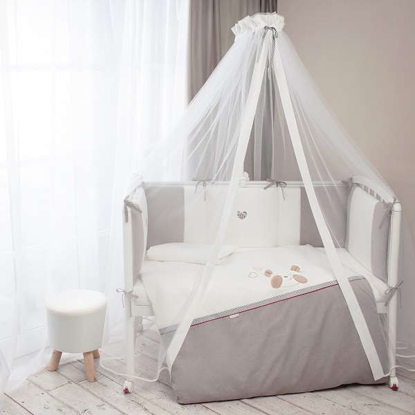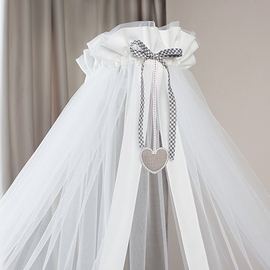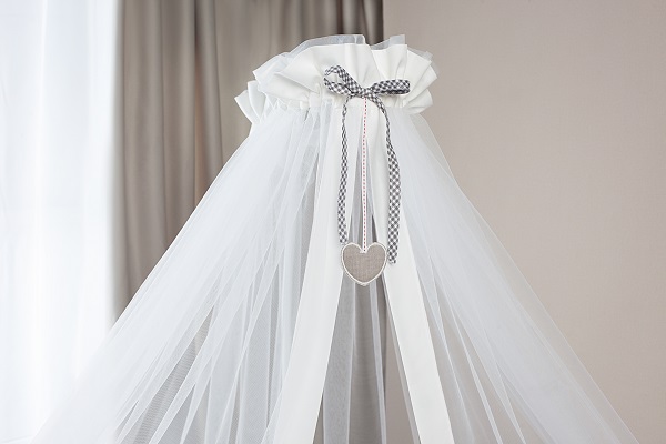 Балдахин создаст особую атмосферу в детской спальне. Он совершенно не мешает доступу воздуха, при этом за счет своей длины в пол полностью накрывает кроватку и защищает малыша от пыли и света.