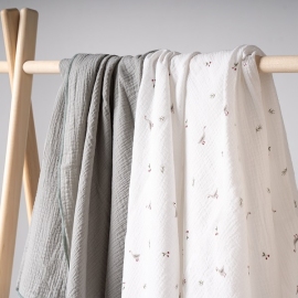 Двухслойные муслиновые пелёнки из 100% хлопка особенно нежно касаются кожи малыша. Они легкие и воздушные, мягко укутывают ребёнка, как невесомое облачко! Милые акварельные рисунки на пеленках добавят особого очарования и ощущения сказки. Ткань - премиальный жатый муслин высокого качества. Такая ткань хорошо пропускает воздух, прекрасно впитывает воду и быстро сохнет. Специальная безопасная технология окрашивания ткани позволяет сохранить стойкость цвета и яркость рисунка даже после многократных стирок. Муслиновые пелёнки размером 130х100 см удобны и практичны в использовании. В пеленку можно полностью завернуть ребёнка, стелить на пеленальный стол, укрывать на прогулке, как пледом. Благодаря впитывающему материалу можно укутывать малыша в пеленку после купания и водных процедур.