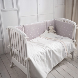 Качество ткани и пошива гарантирует долгий срок службы комплекта. В основе набора премиальный сатин ТС300 - это натуральный хлопок, который за счет особого плетения нитей блестит, как шелк, отличается нежностью и гладкостью. Чехлы бортиков из натурального хлопка Eco Soft Cotton, который отлично пропускает воздух и долго остается как новый даже после многократных стирок. Бортики составные, это дает разные варианты использования.