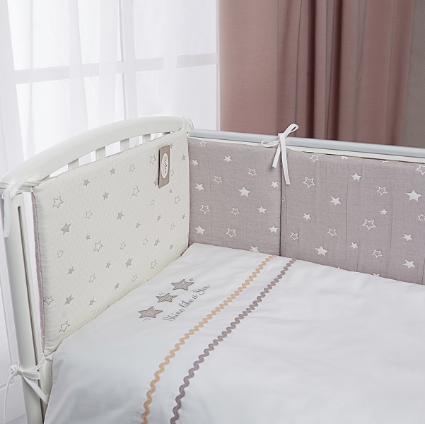 В этой модели мы применили несколько удачных дизайнерских решений: разные фактуры постельного белья и бортиков образуют интересное сочетание, двусторонняя окраска бампера дарят свободу воображению, фактурная вышивка задает тон и обязательно заинтересует маленького первооткрывателя.