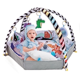 0-2 месяца: Малыш играет на спинке лёжа. На самом раннем этапе своего развития малыш тянется за притягивающими внимание игрушками и учится их хватать. В комплекте с ковриком прилагаются 5 подвесных мягких игрушки, привлекательные и с необычным дизайном. Внутри некоторых игрушек имеется звуковое сопровождение - пищалка, погремушка и т.п. Игрушки служат для развития тактильных ощущений и зрения. Также в комплекте имеется подушка под голову.