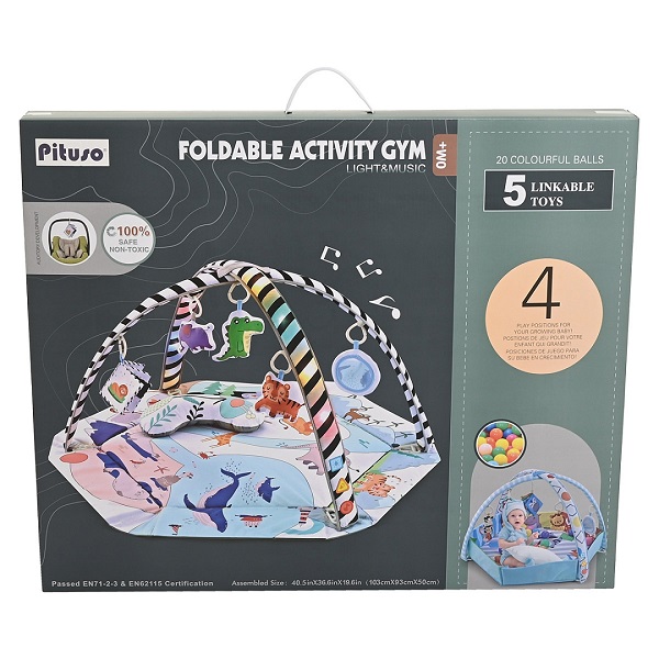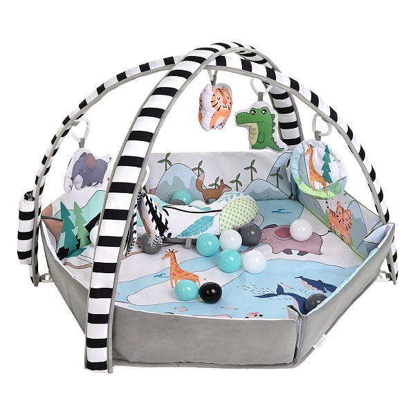 В комплекте с ковриком 20 разноцветных шариков (Ø 5 см), с которыми можно также играть.