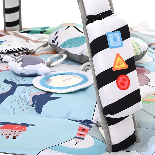 Одна из дуг коврика имеет световое сопровождение (разноцветные огоньки) и успокаивающие мелодии.
