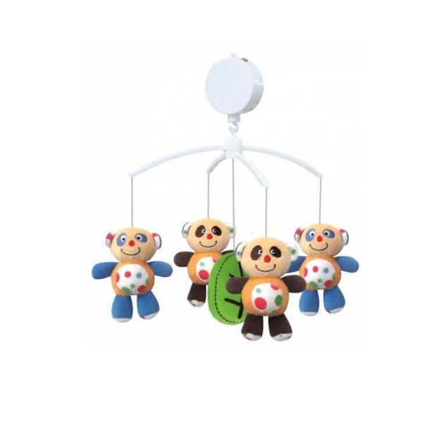 - Цветные мягкие игрушки, которые можно также использовать как отдельные игрушки, скрашивают малышу время, проведенное в кроватке, а успокаивающая мелодия, доносящаяся из механизма, помогает крохе быстрее заснуть