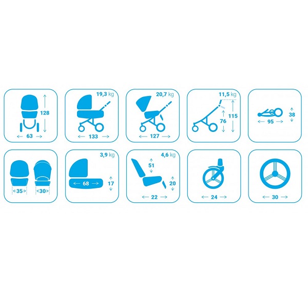 - Шасси совместимо с автокреслами 0+ Berber, Carlo, Maxi-Cosi, Cybex, Bobostello и Ramatti (необходимы адаптеры, приобретаемые отдельно).
