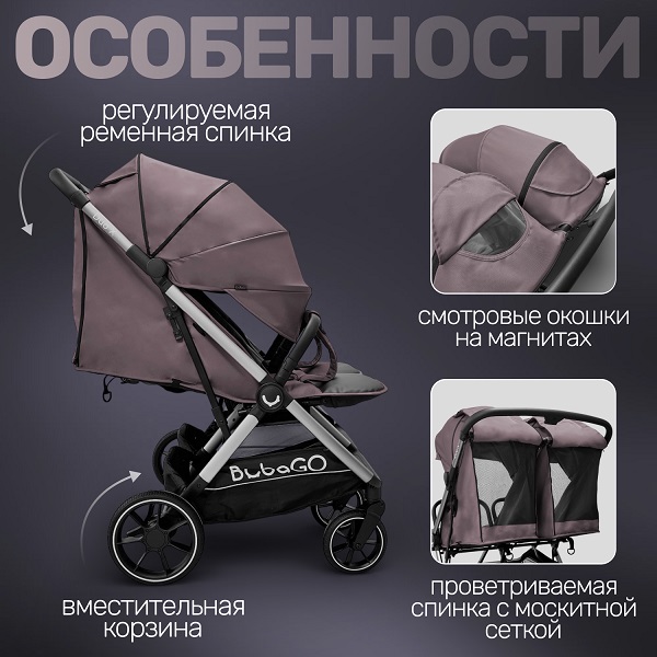 BubaGO DUO X — современная прогулочная коляска для двойни, созданная для активных родителей, которым важны удобство, надёжность и компактность. Продуманная до мелочей конструкция обеспечивает комфорт каждому малышу и лёгкость управления .