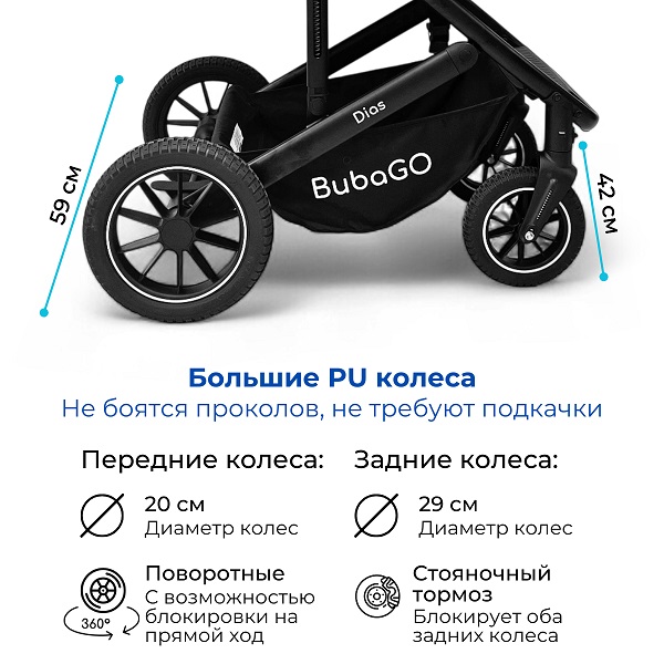BubaGO Dias — это практичная и многофункциональная коляска, которая заменяет сразу три отдельных изделия: люльку для новорождённого, прогулочную коляску для подросшего ребёнка и автолюльку для безопасных поездок в машине.