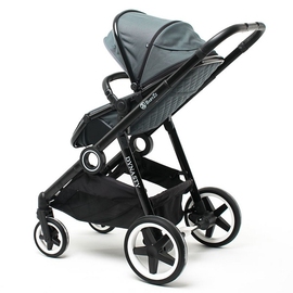 Шасси коляски BabyZz DYNASTY изготовлены из алюминия. Родительская телескопическая ручка обшита кожей. Поворотные колеса выполнены из полиуретана. Они оснащены амортизационной системой. Передние колеса при необходимости можно блокировать.