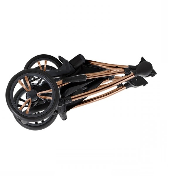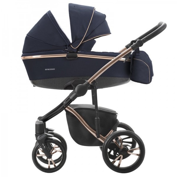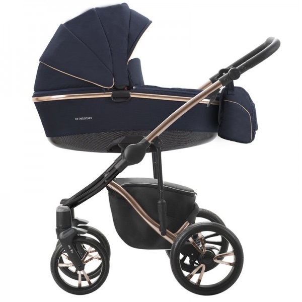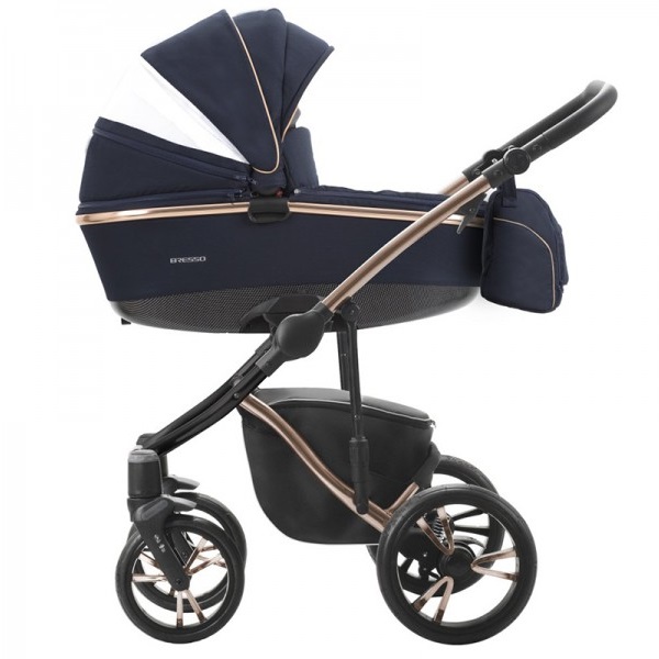 Bebetto Bresso Premium Class STELLA 2020 – это коляска для самых требовательных покупателей. Данная модель сочетает в себе дизайн высшего класса и инновационные решения, обеспечивающие комфорт для Вас и Вашего ребенка. Отличительными особенностями данной модели являются изысканный дизайн рамы, дисков колес и ободка на люльке, выполненных в бронзовом цвете, а особенную неповторимость ее дизайну придает люлька с карбоновой текстурой дна. Для Вашего удобства в Bebetto Bresso Premium Class STELLA 2020 предусмотрено 2 способа регулировки капора спального блока и снятия люльки. В данной модели Вы можете отрегулировать капор легким нажатием на капюшон спального блока сверху или при помощи двух кнопок, расположенных с внутренней стороны люльки. Также Вы можете выбрать способ снятия люльки с шасси: рычаг, расположенный на дне спального блока, или кнопки, симметрично расположенные на боковых креплениях люльки к раме. Приятным дополнением ко всему вышеперечисленному станет крепление чехла люльки и капюшона к спальному блоку с помощью молнии и мягкий непромокаемый матрасик со съемным чехлом из бамбука. Bebetto Bresso Premium Class STELLA 2020 – это коляска для тех, кто любит быть в центре внимания.