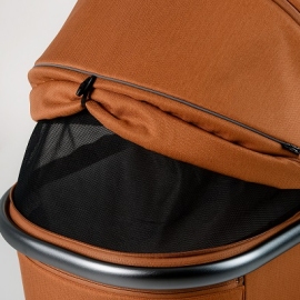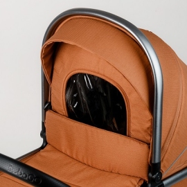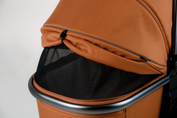 Глубокий капюшон с широким мягким козырьком и дополнительной секцией для защиты ребенка от погодных условий и солнечных лучей делает прогулки комфортными в любое время года. От жары спасут секция для вентиляции в капоре и окошко для вентиляции в спинке люльки. Москитная сетка защитит от назойливых насекомых, а дождевик от любой непогоды. Накидка на люльке легко расстегивается для быстрого доступа к малышу зимой, а также имеет дополнительный клапан со смотровым окошком, который полностью закрывает отверстие в люльке при сильной непогоде или морозе. Матрасик и стенки люльки внутри покрыты х/б тканью, которая снимается для стирки при необходимости. Ручка для переноски и ножки на дне люльки делают ее транспортировку удобной и безопасной.