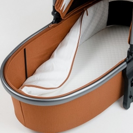 Прогулочный блок коляски легко устанавливается по ходу и против движения благодаря реверсивной системе. Сиденье прогулочного блока просторное, что обеспечивает комфортное путешествие даже подросшему ребенку в любой одежде. Капюшон с дополнительной секцией отстегивается до самого бампера, ткань, как и в люльке, имеет защиту от солнечных лучей 50UV и водооталкивающее покрытие. В прогулочном блоке предусмотрен теплый чехол на ножки, плотно прилегающий по бокам к раме. Коляска обеспечивает безопасность ребенка с помощью пятиточечных ремней и межпаховой перемычки, а также откидного поворотного бампера. Для самых маленьких предусмотрена мягкая подушечка-подголовник на липучке для безопасности и правильной поддержки головы во время поездок. Спинка и подножка регулируются, вплоть до горизонтального положения вместительного спального места. Шасси можно сложить с прогулочным блоком, с помощью удобной ручки, за которую их потом можно переносить.
