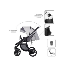 Kitelli Areo – это современная и многофункциональная коляска, с которой Ваши прогулки с ребенком будут приносить только удовольствие. Отличительными особенностями данной модели являются стильная конструкция капюшона, имеющая клиновидную форму, и элегантный дизайн рамы в черном цвете. К неоспоримым преимуществам Kitelli Areo относятся: крепление чехла люльки и капюшона к спальному блоку с помощью молнии и окошко для мамы на ветрозащитном бортике. В теплое время года Вы обязательно оцените москитную сетку, которая пристегивается к капюшону люльки и надежно защищает ребенка от надоедливых насекомых. Для удобства родителей в коляске предусмотрены: сумка для мамы с дополнительными кармашками и вместительная корзина с функцией увеличения объема и легкого доступа к покупкам. А возможность сложения рамы вместе с прогулочным блоком станет приятным дополнением ко всему вышеперечисленному. Kitelli Areo – коляска, сделанная с любовью.