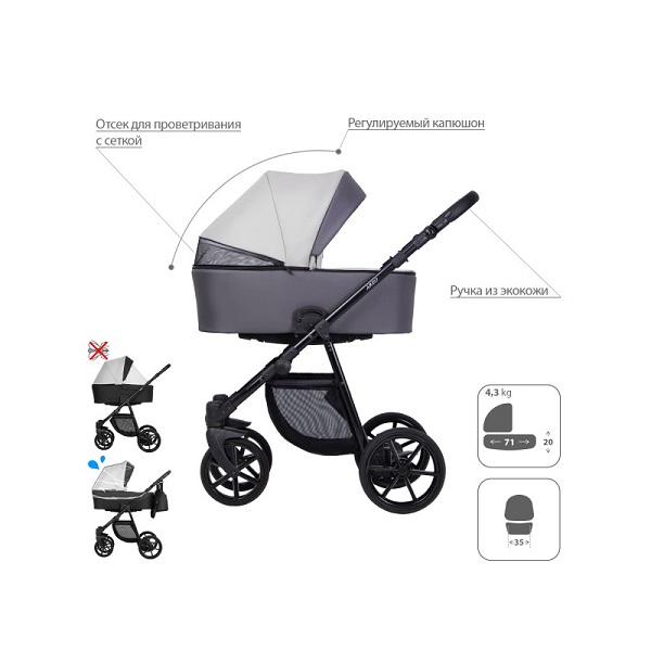 - Чехол люльки с дополнительным бортиком защищающим от ветра и пыли.