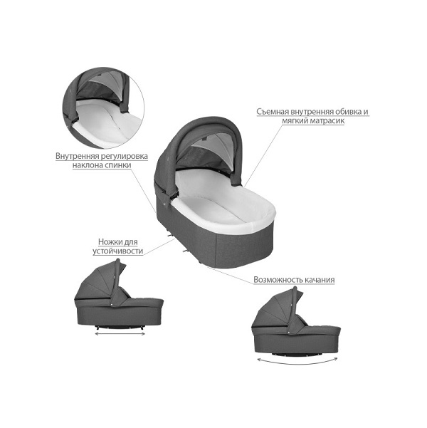 - Удобная ручка на капюшоне для переноски люльки.