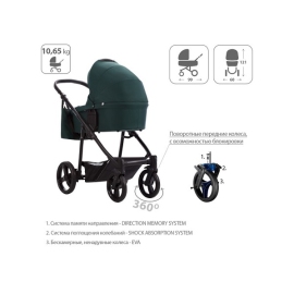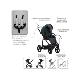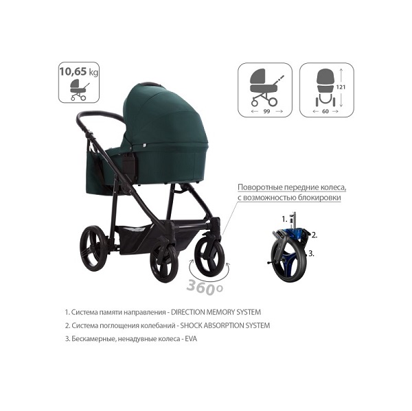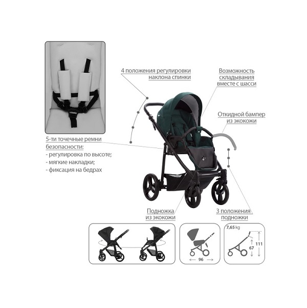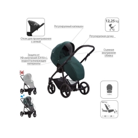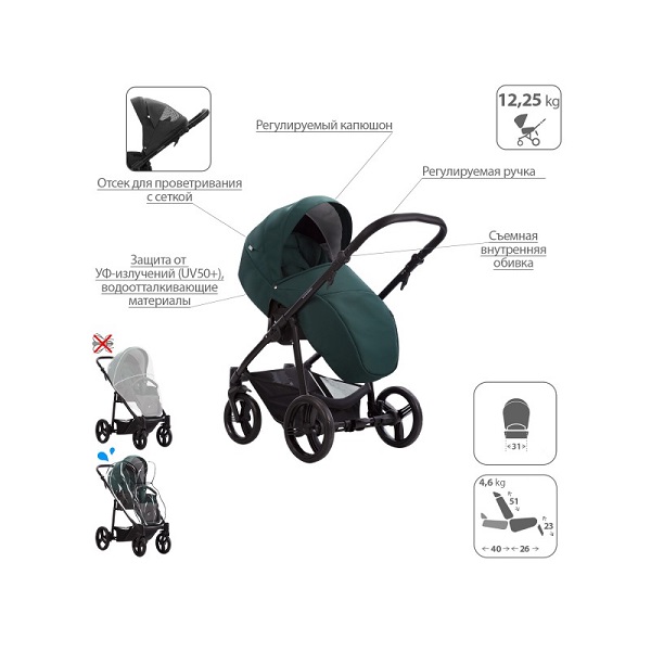 - Обивка коляски: водоотталкивающая, съемная, с УФ-защитой 50+.