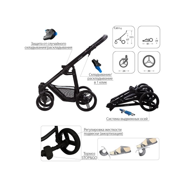 - Автоматическая блокировка коляски во время раскладывания (AUTO-BLOCKER).