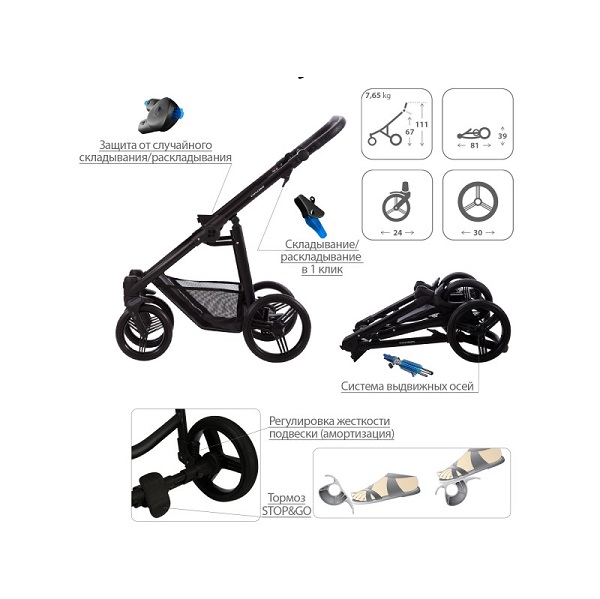 - Автоматическая блокировка коляски во время раскладывания (AUTO-BLOCKER).