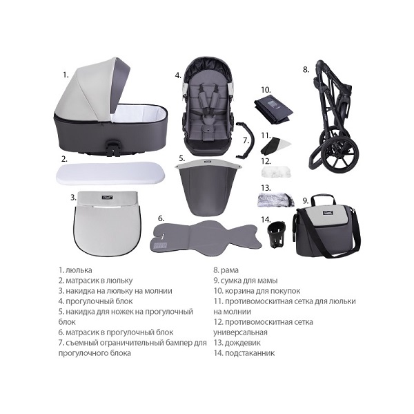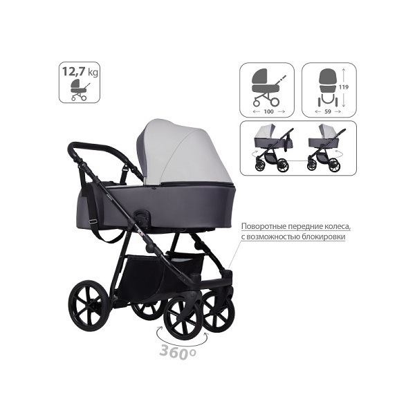 Конструкция данной коляски позволяет устанавливать на нее люльку, сиденье прогулочного блока или автомобильное кресло. Люлька и прогулочный блок реверсивные, их можно устанавливать как «лицом к маме», так и «лицом от мамы». Спальный вариант коляски предназначен для детей в возрасте от 0 до 7 месяцев (весом до 9 кг), прогулочный блок рассчитан на возраст от 7 месяцев до 3 лет (вес ребенка до 15 кг).