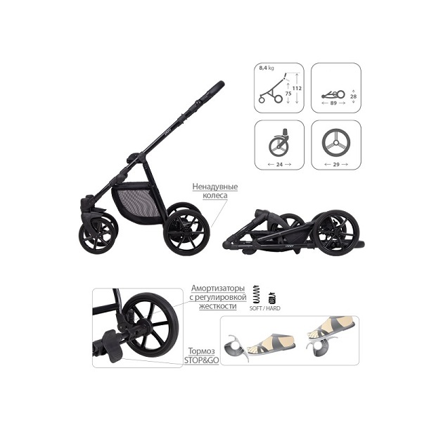 - Единый центральный тормоз STOP/GO, блокирующий одновременно два задних колеса. Тормоз устроен по типу «качельки», что защищает вашу обувь от повреждений.