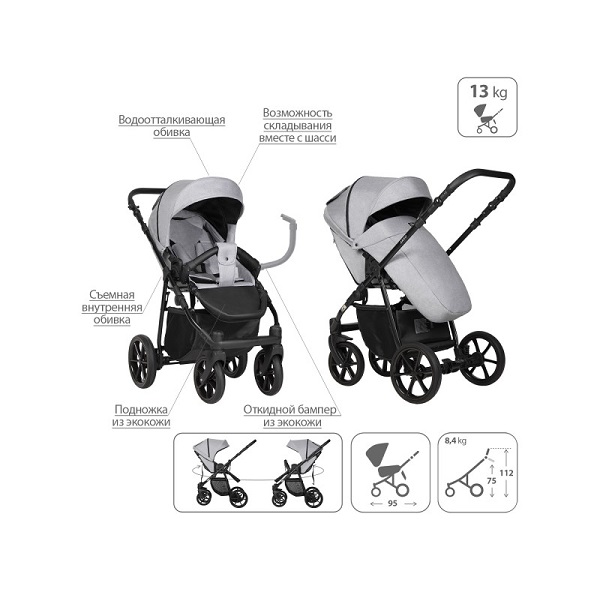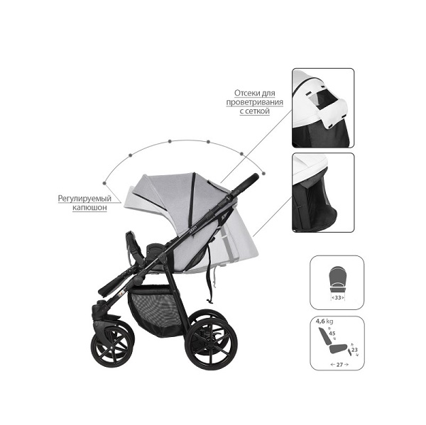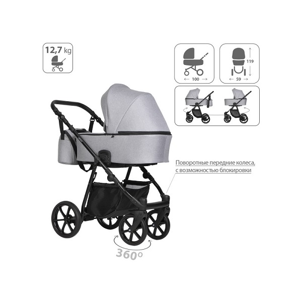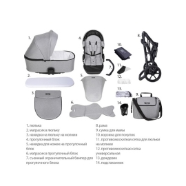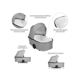 Конструкция данной коляски позволяет устанавливать на нее люльку, сиденье прогулочного блока или автомобильное кресло. Люлька и прогулочный блок реверсивные, их можно устанавливать как «лицом к маме», так и «лицом от мамы». Спальный вариант коляски предназначен для детей в возрасте от 0 до 7 месяцев (весом до 9 кг), прогулочный блок рассчитан на возраст от 7 месяцев до 3 лет (вес ребенка до 15 кг).