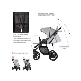 - Регулируемые 5-точечные ремни безопасности с мягкими накладками на плечи.