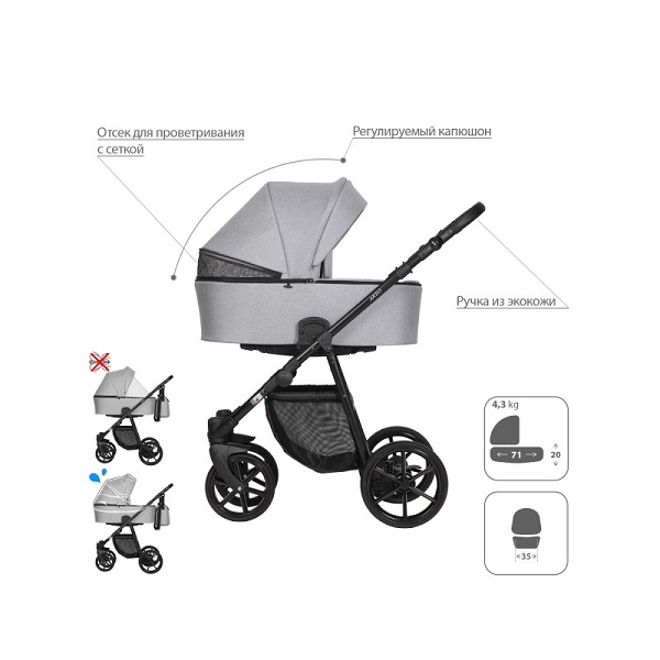 - Чехол люльки с дополнительным бортиком защищающим от ветра и пыли.