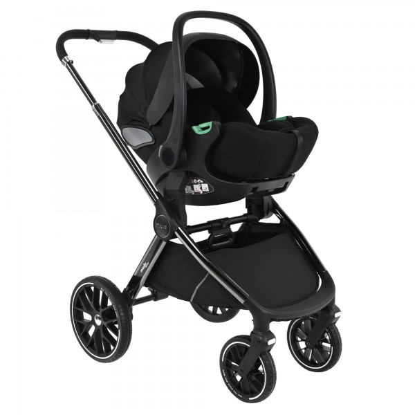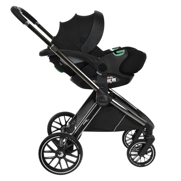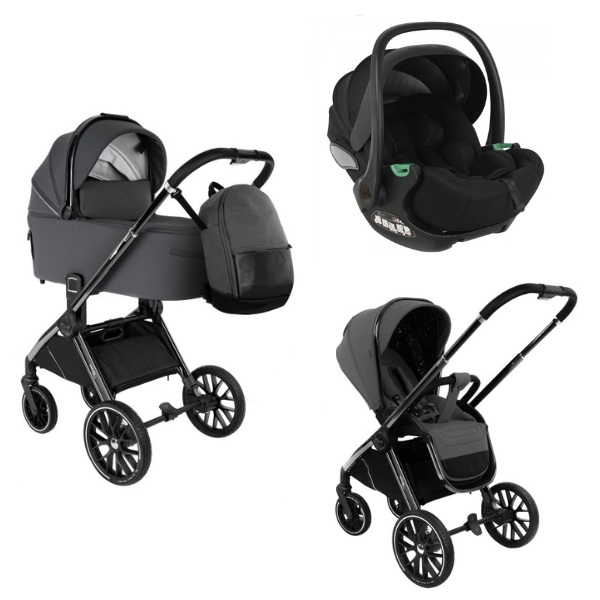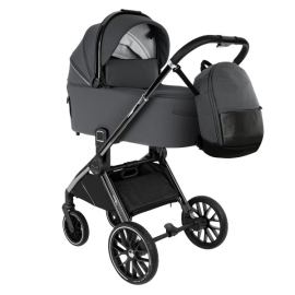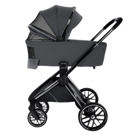 - Рама из облегченного алюминия с покрытием Black Chrome имеет повышенную износостойкость и компактно складывается по типу "книжки" вместе с прогулочным блоком.
