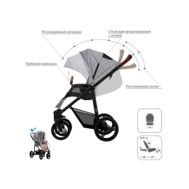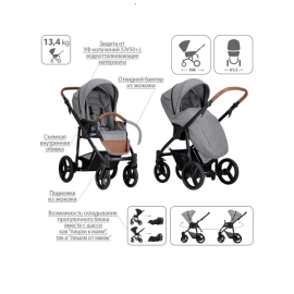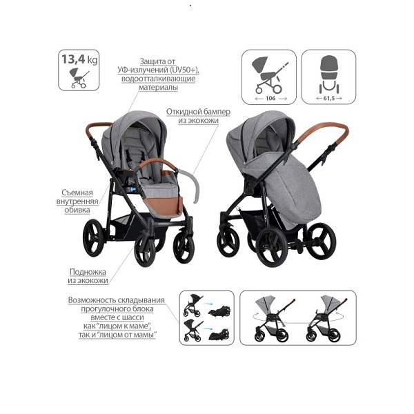 - Обивка коляски: водоотталкивающая, съемная, с УФ-защитой 50+.